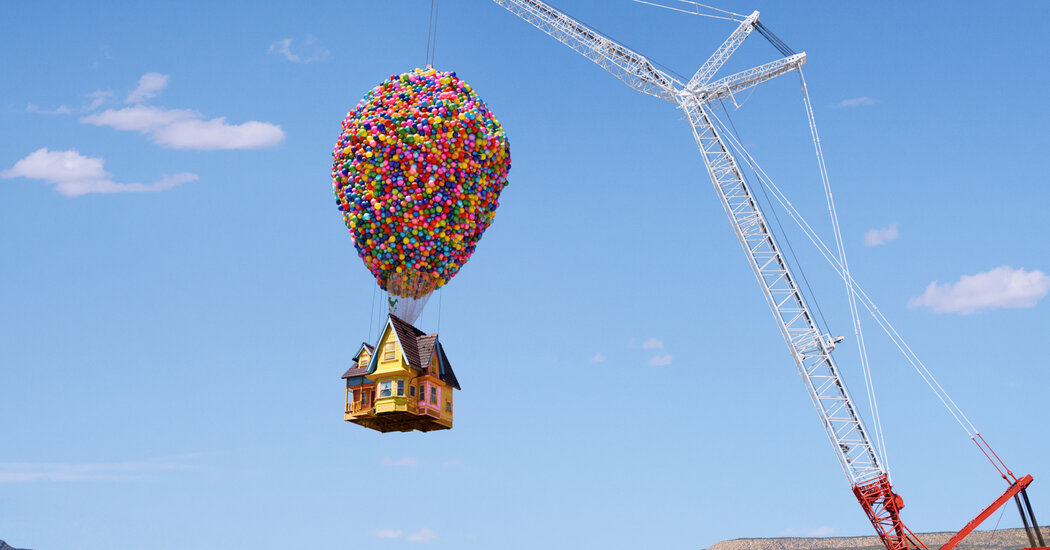 Highlights included a replica of the floating house from the 2009 Pixar animated film “Up” and balloons. With the help of a giant crane, the house will be suspended above the New Mexico desert.