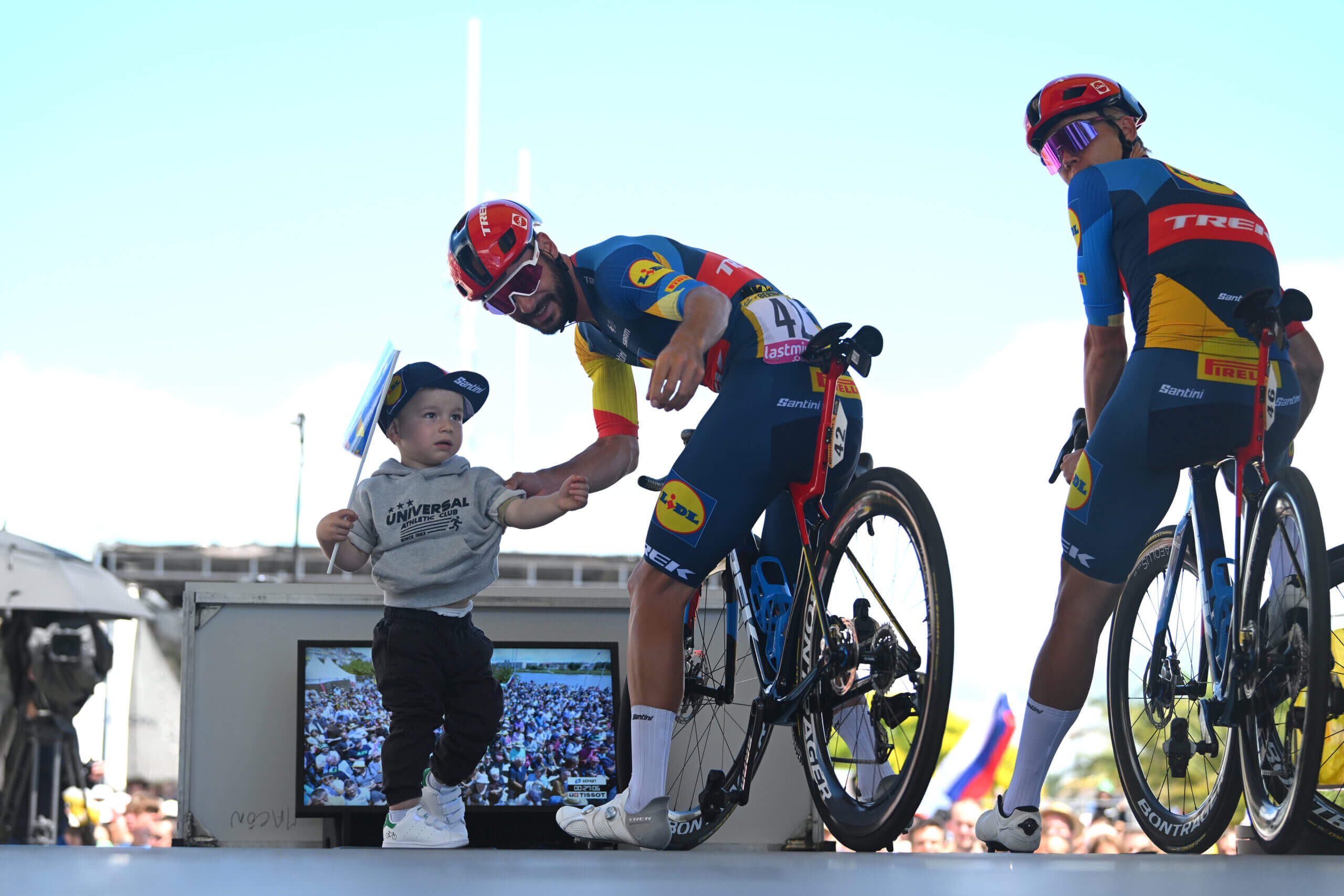 It was an incredible sight for Julien Bernard, who was cheered on by incredible fans and stopped with his family during the time trial.#TDF2024 📺: Peacock pic.twitter.com/FjIhSOWtjx